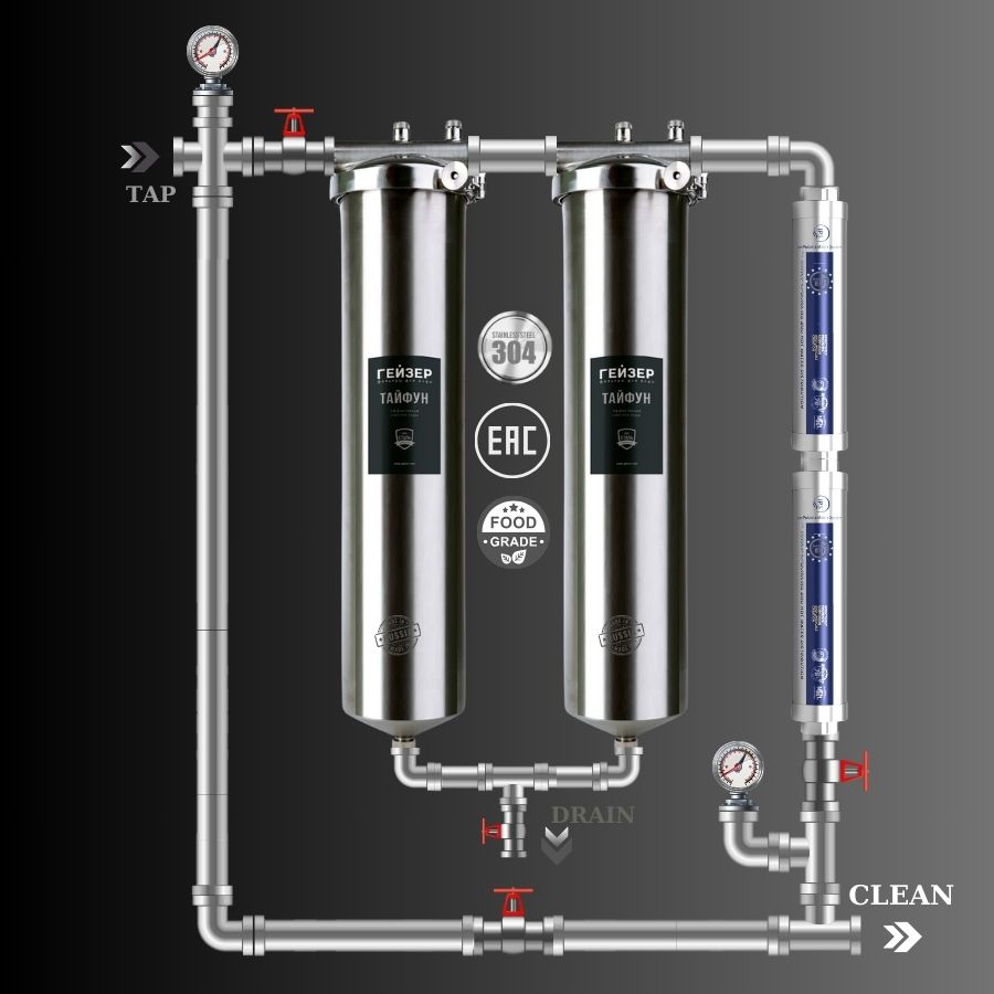 Lọc tổng đầu nguồn Geyser Ecotar 2F2A – Lọc tổng đầu nguồn thế hệ mới từ Nga, tích hợp 2 lõi Aragon 6-in-1 và 2 từ trường chống cặn châu Âu (hoặc 1 Active 4-in-1), loại bỏ 100% clo, PFAS, carcinogen, kim loại nặng, cặn cứng <300 ppm, chăm sóc da độc quyền.